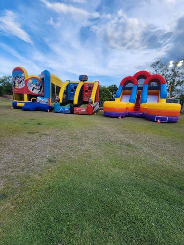 We offer a wide variety of Inflatables for hire, including bounce houses, water slides, obstacle courses, and interactive inflatables such as a Boxing ring and Sumo Suits.